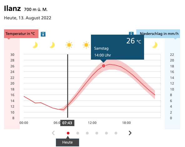 Der Tag ist also nicht ganz so gut wie gestern erwartet. Es hat aber auch weniger Wind als erwartet. Die Durchschnittsgeschwindigkeit wird aber etwas leiden, so dass ich eher 80 als 100km vorschlagen würde.