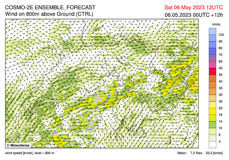 Averses précoces dans le Jura et les Préalpes, longtemps sec chez nous. Les premières averses dans la région devraient se produire l'après-midi au-dessus d'Interlaken, Hardergrat. Dans la cuvette de Grindelwald, pas avant le soir, mais j'estime qu'il est bon de terminer les vols avant 16 heures.
