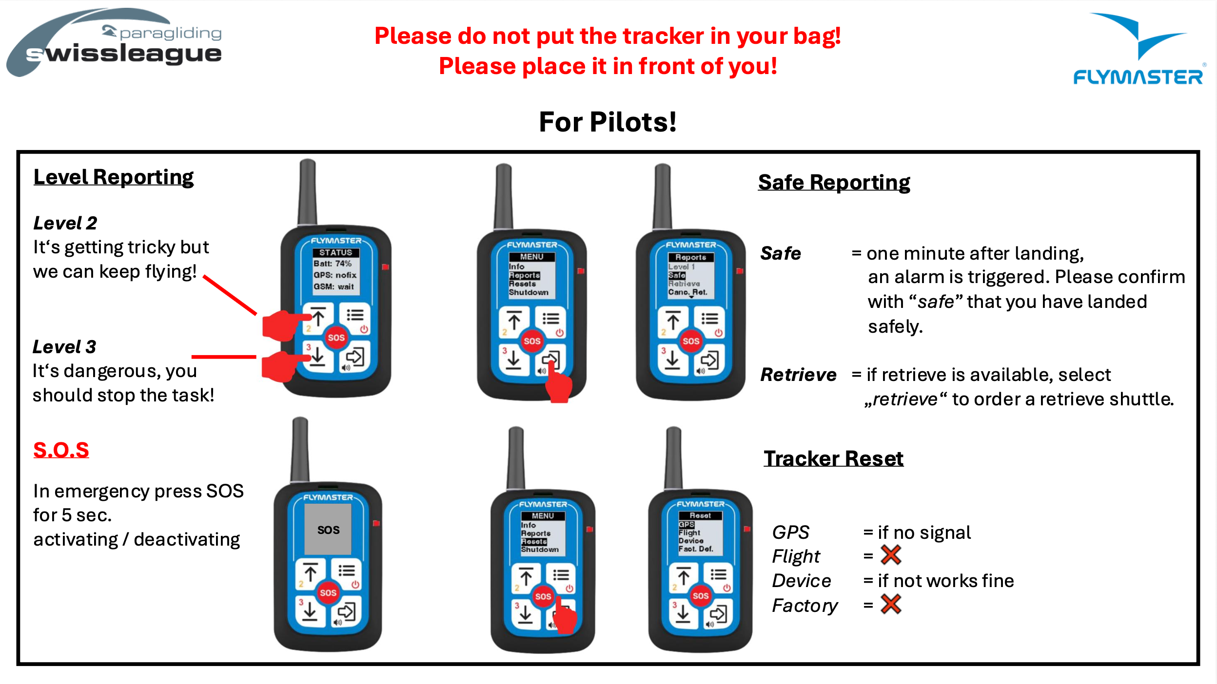 Your tracker must be installed in your cockpit. It has to be within your visibility and within your reach for level reports