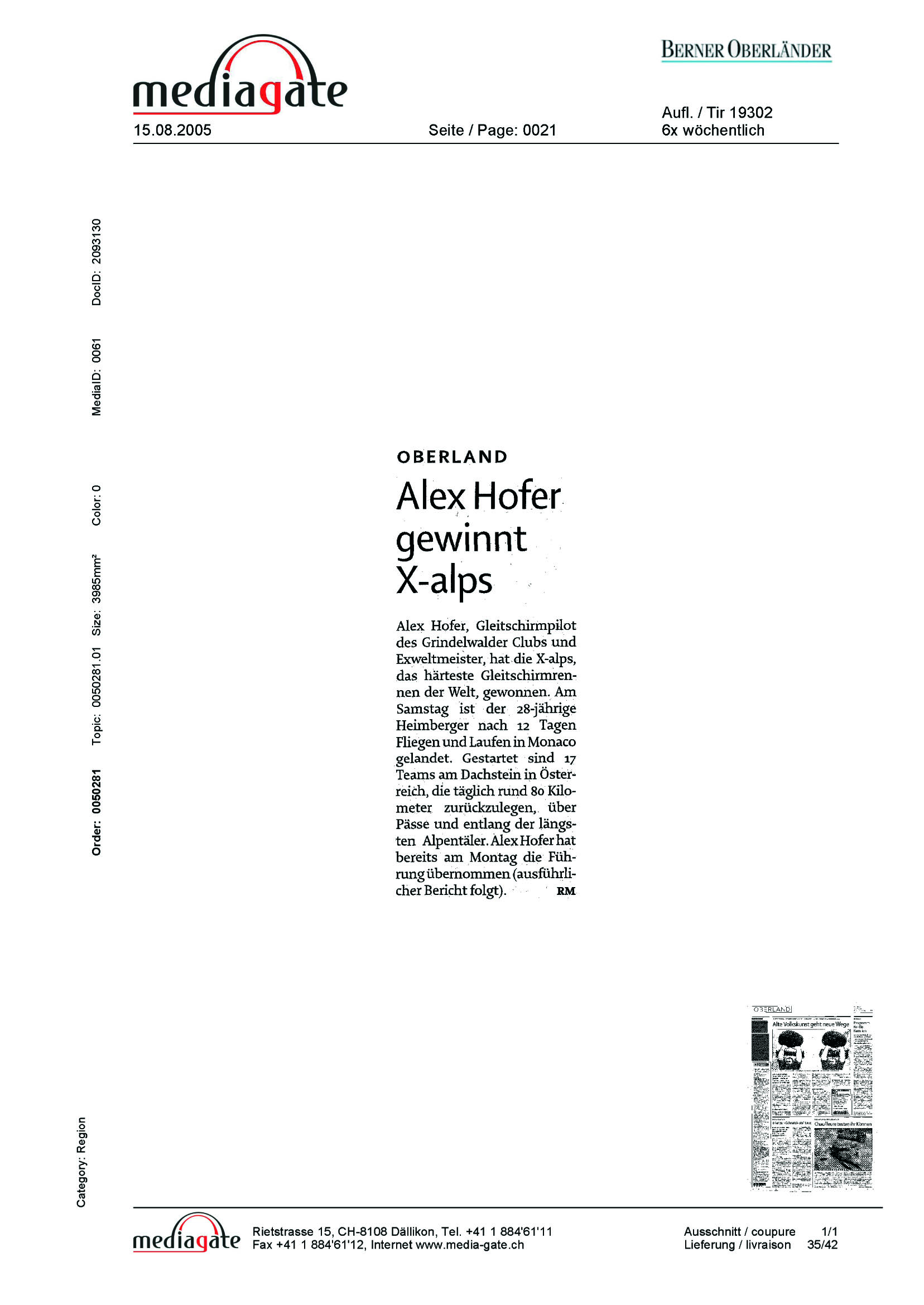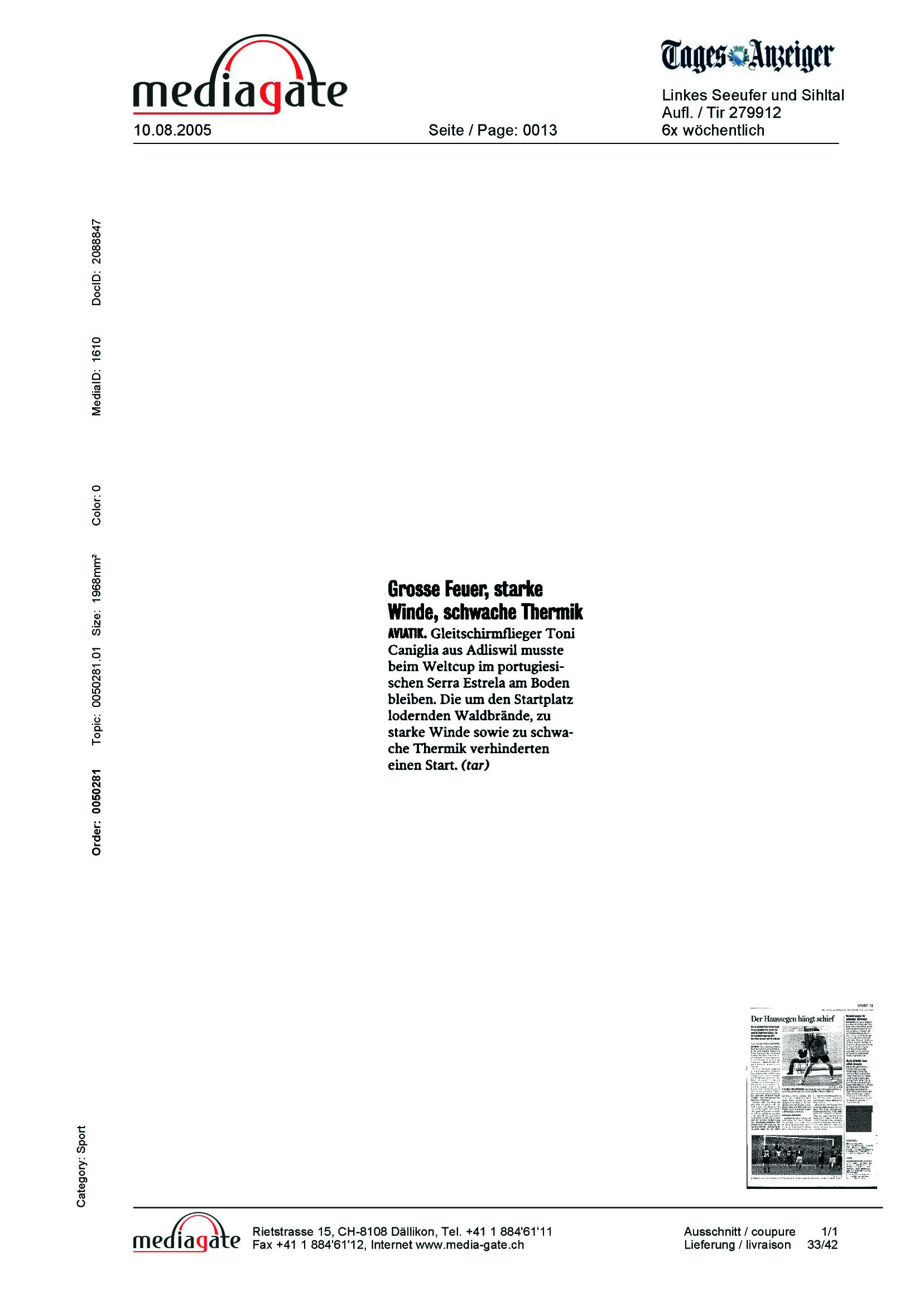 Tages Anzeiger Linkes Seeufer und Shiltal | 14.09.2005